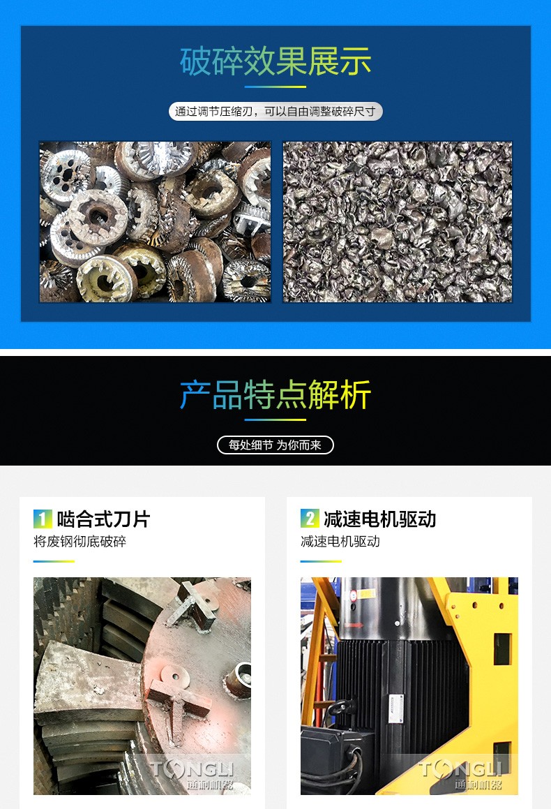废钢破碎机是结合市场需求而成的产品。主要针对量废弃金属的再生利用,进行预破碎处理,并清理表面的油漆和污垢。