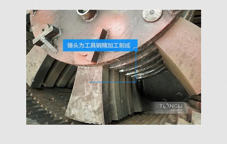 3. 破碎机锤头为特殊工具钢特殊工艺加工制成,破碎范围广,同时具有破裂、扯断、挤压等破碎功能,破碎粒度小。对不同规格的物料皆可轻松破碎。